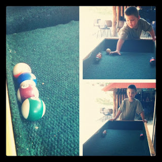 i played carpet ball with tennyson. he's four and a half. i let him beat me. he's a hilarious kid.